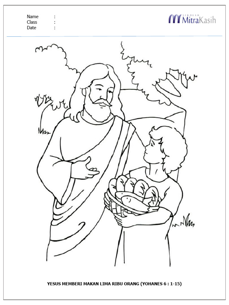 5 roti dan 2 ikan. Di balik keajaiban 5 roti dan 2 ikan, apa pikiran tuhan?. Coloring nk