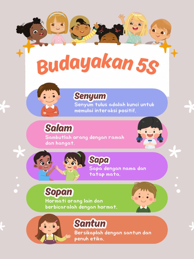 Poster Budayakan 5S Senyum Salam Sapa Sopan Santun, Poster Edukasi Anak …